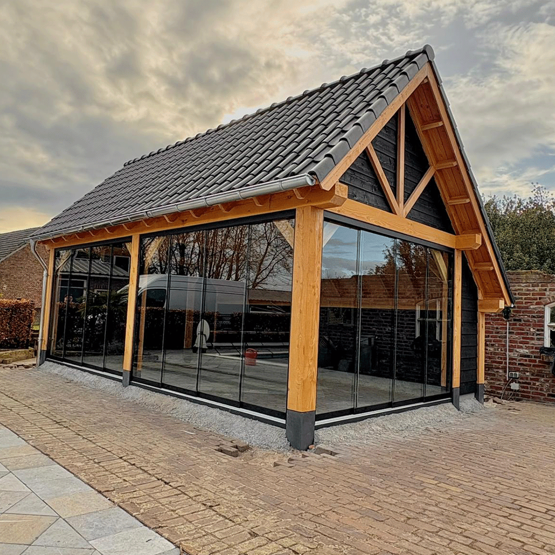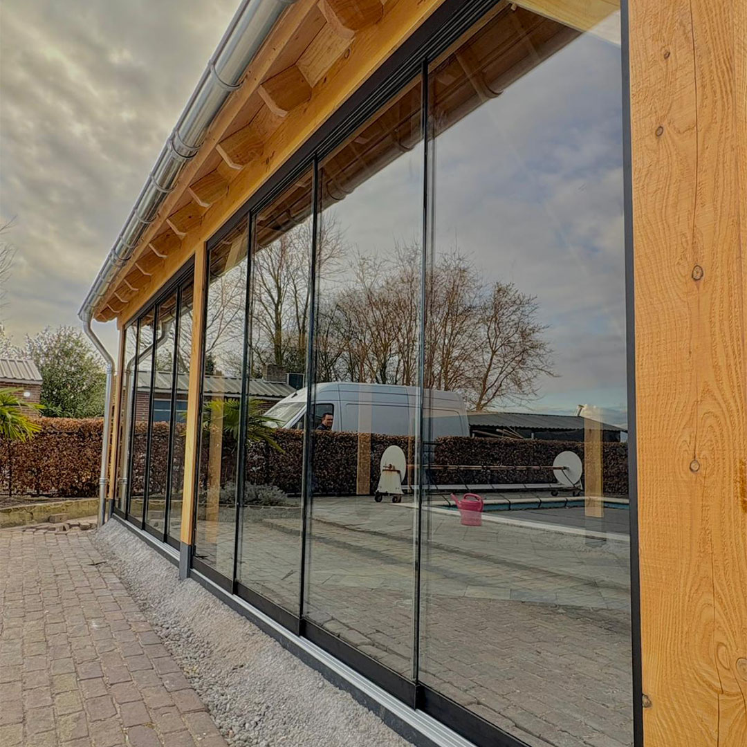 Daarnaast bieden wij de mogelijkheid om uw overkapping te voorzien van glazen schuifwanden, voor extra comfort en een luxe uitstraling.
